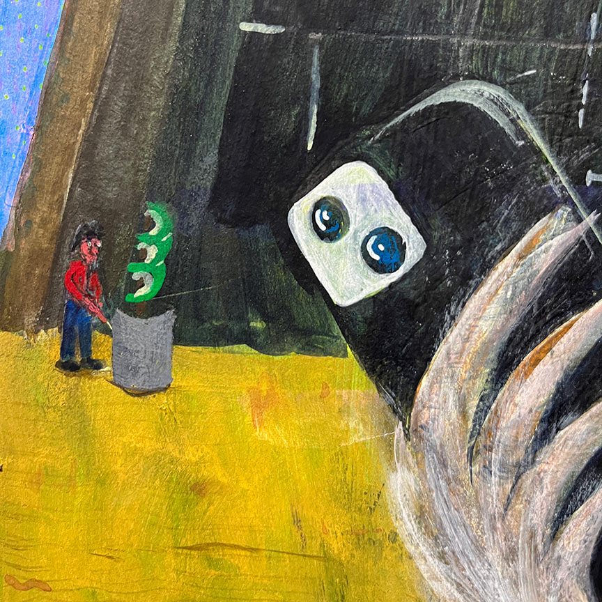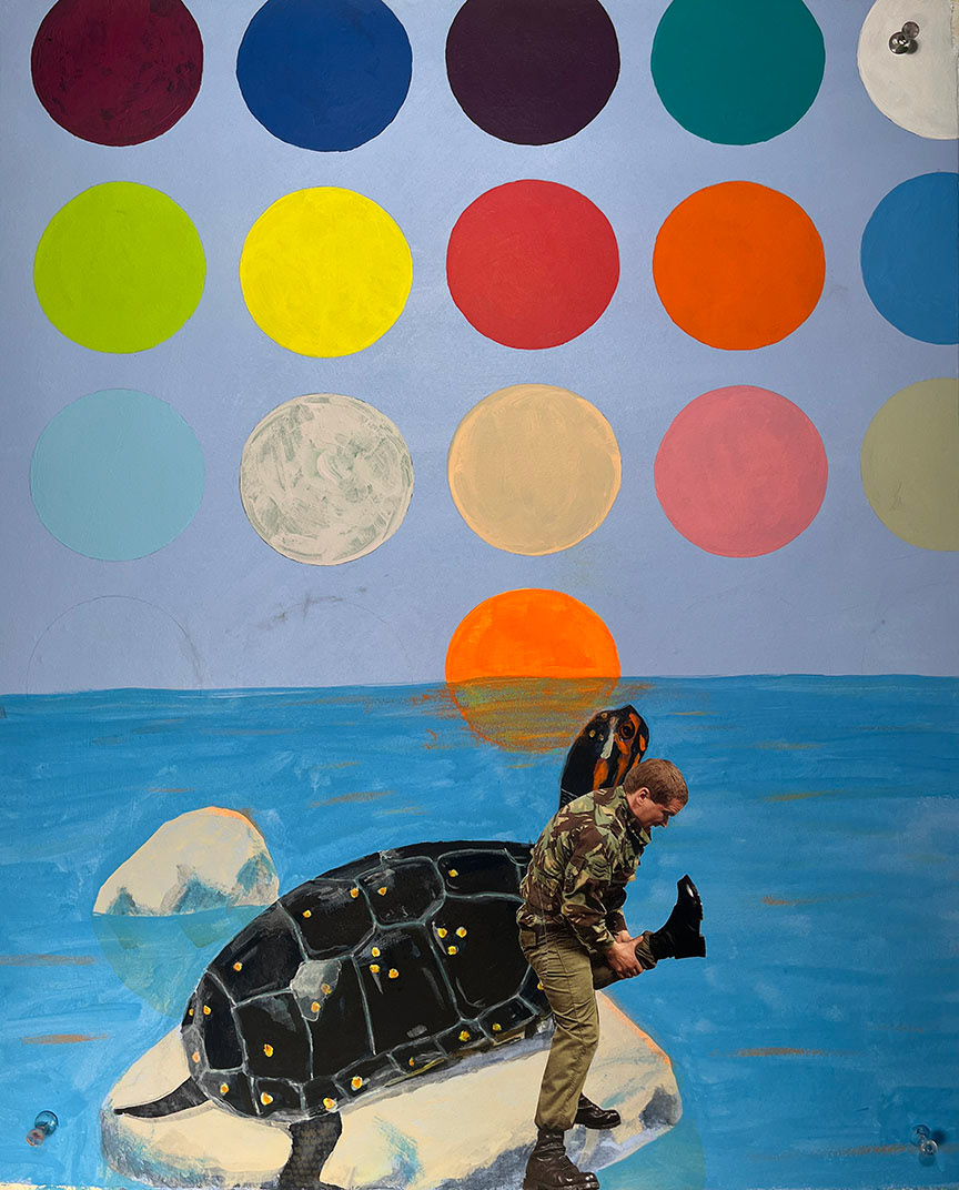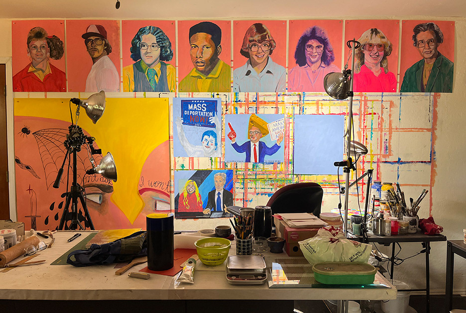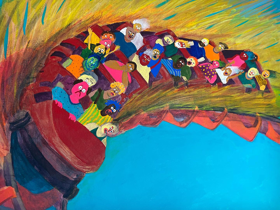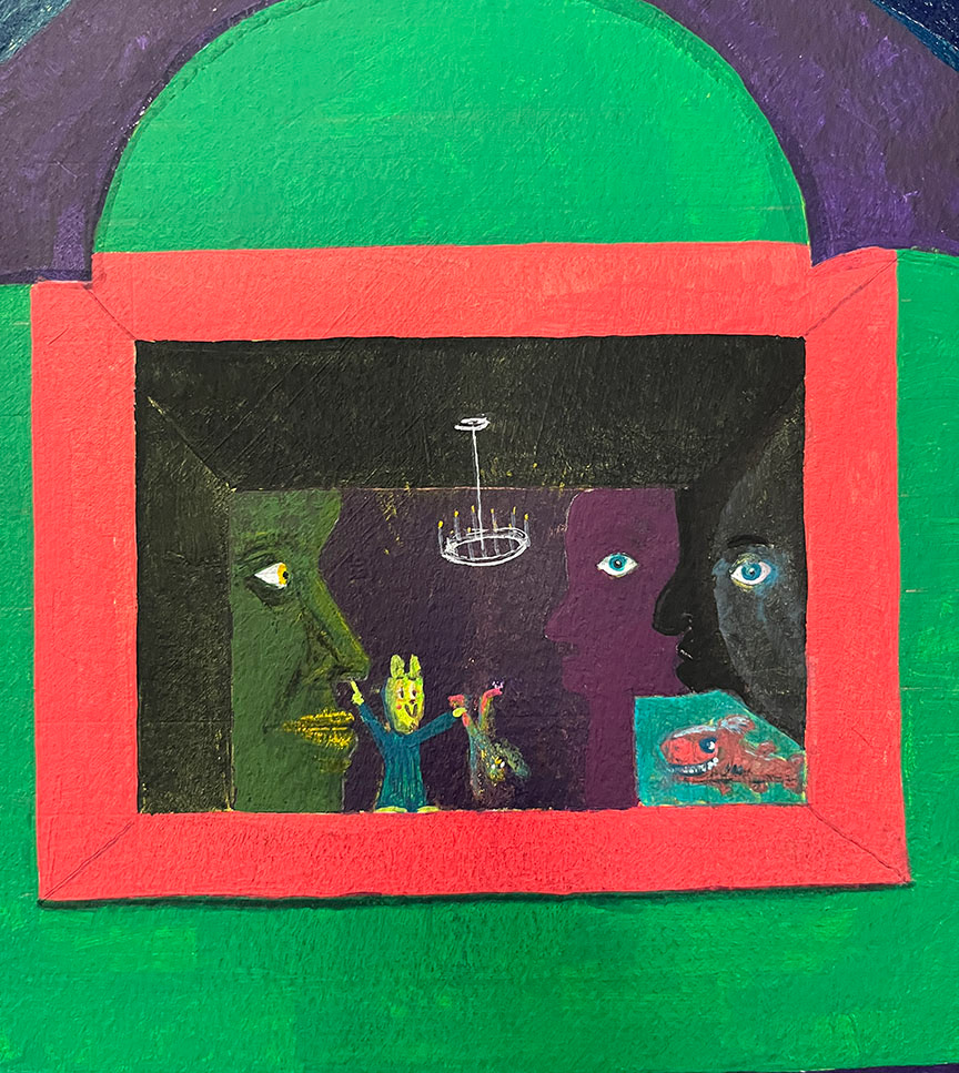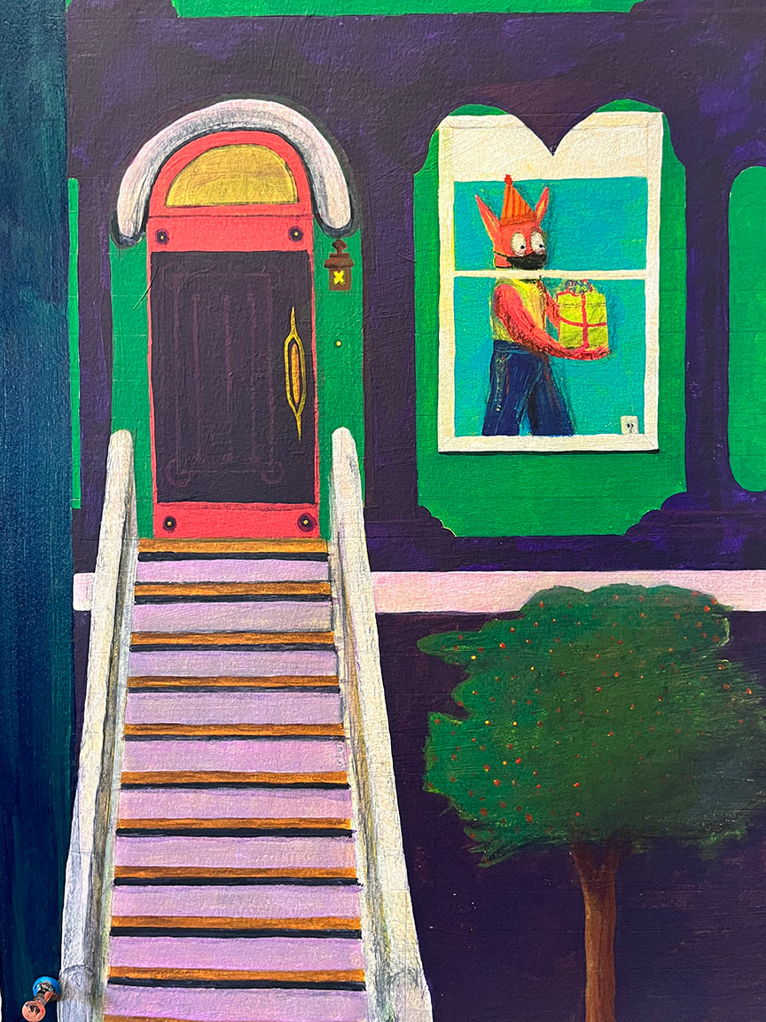 Paintings on heavy printmaking paper using bright colors and my skewed sense of humor.