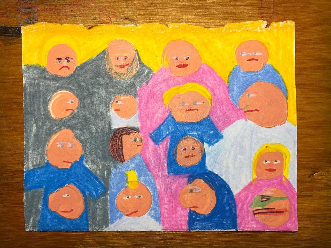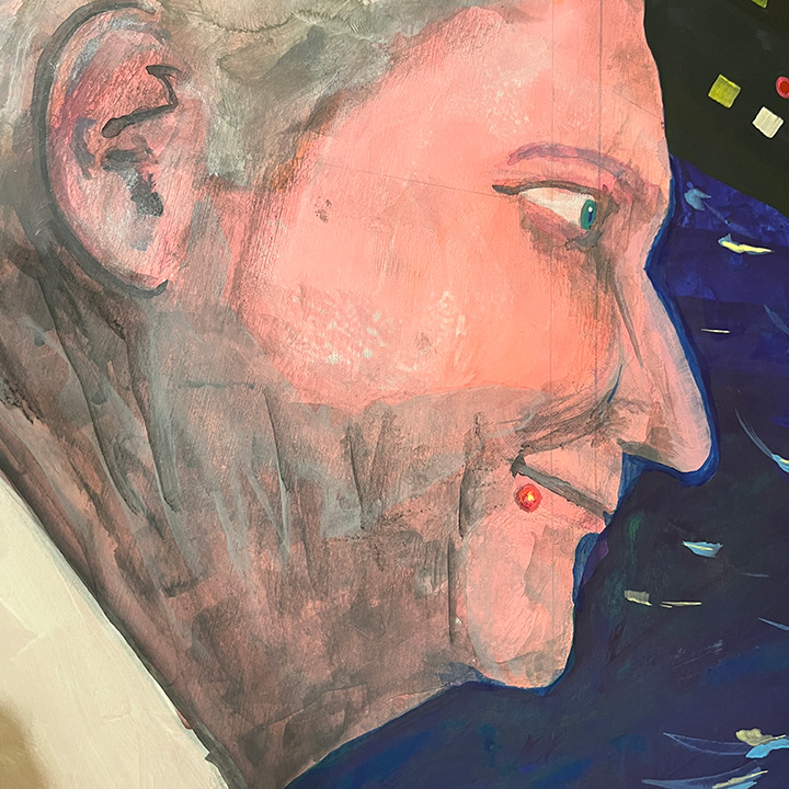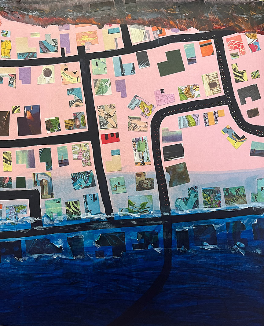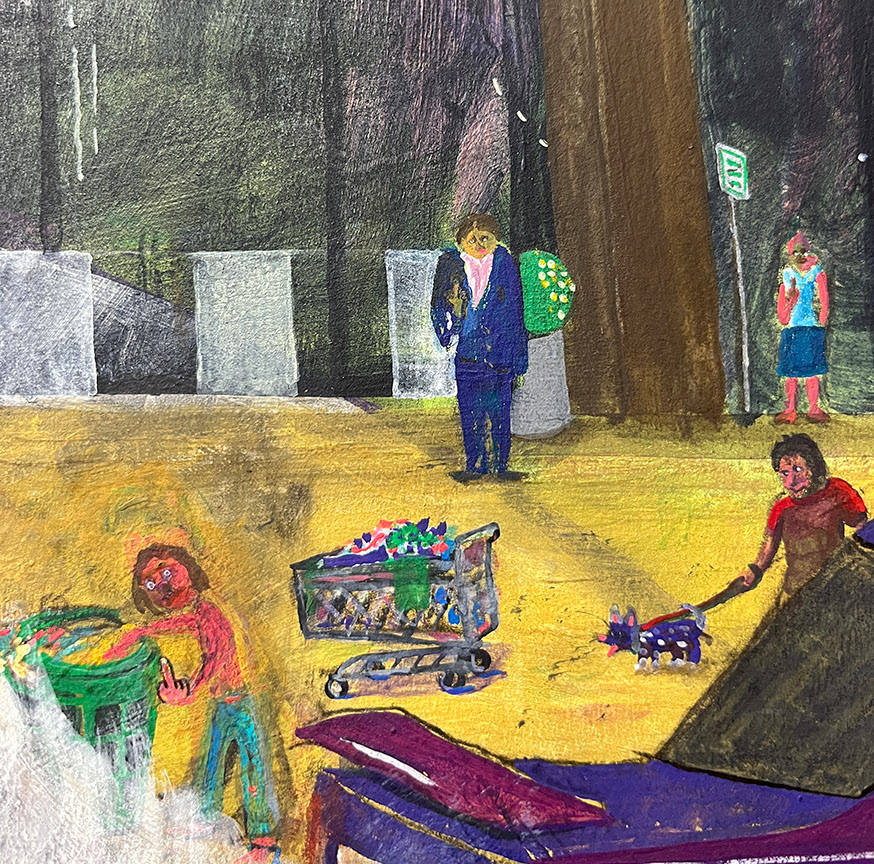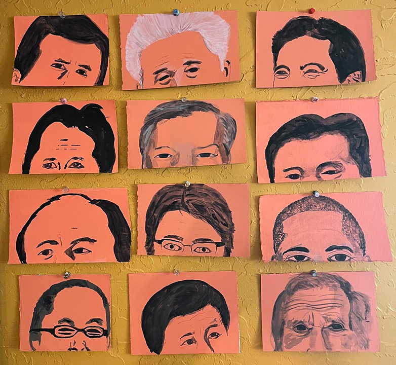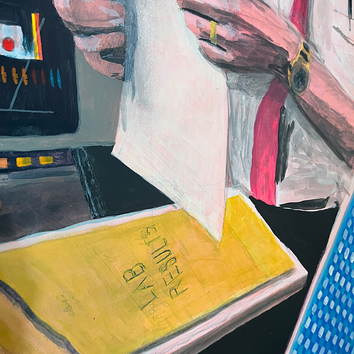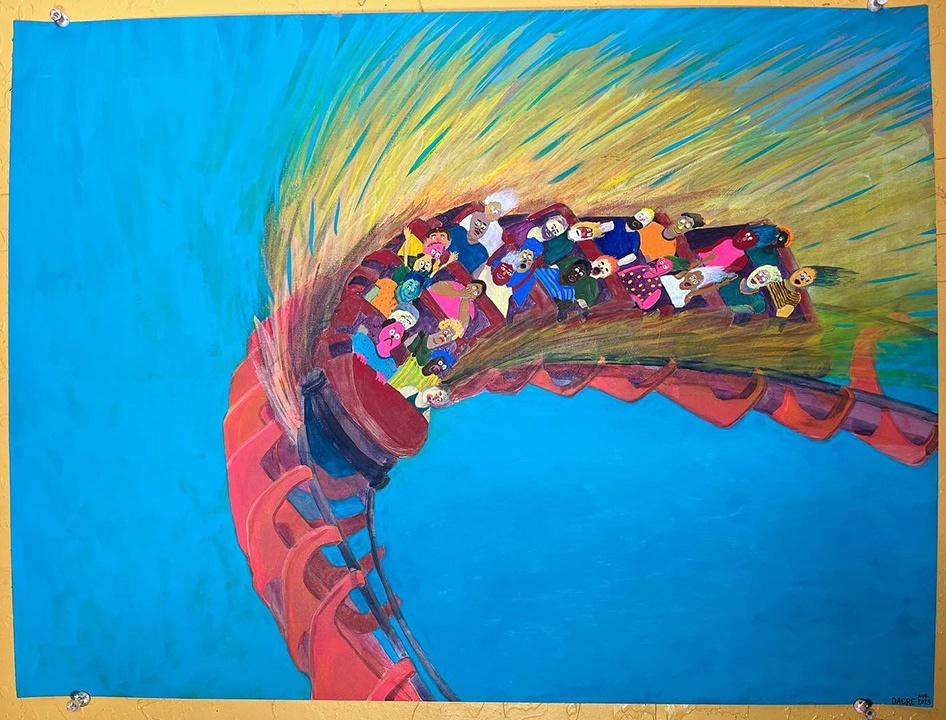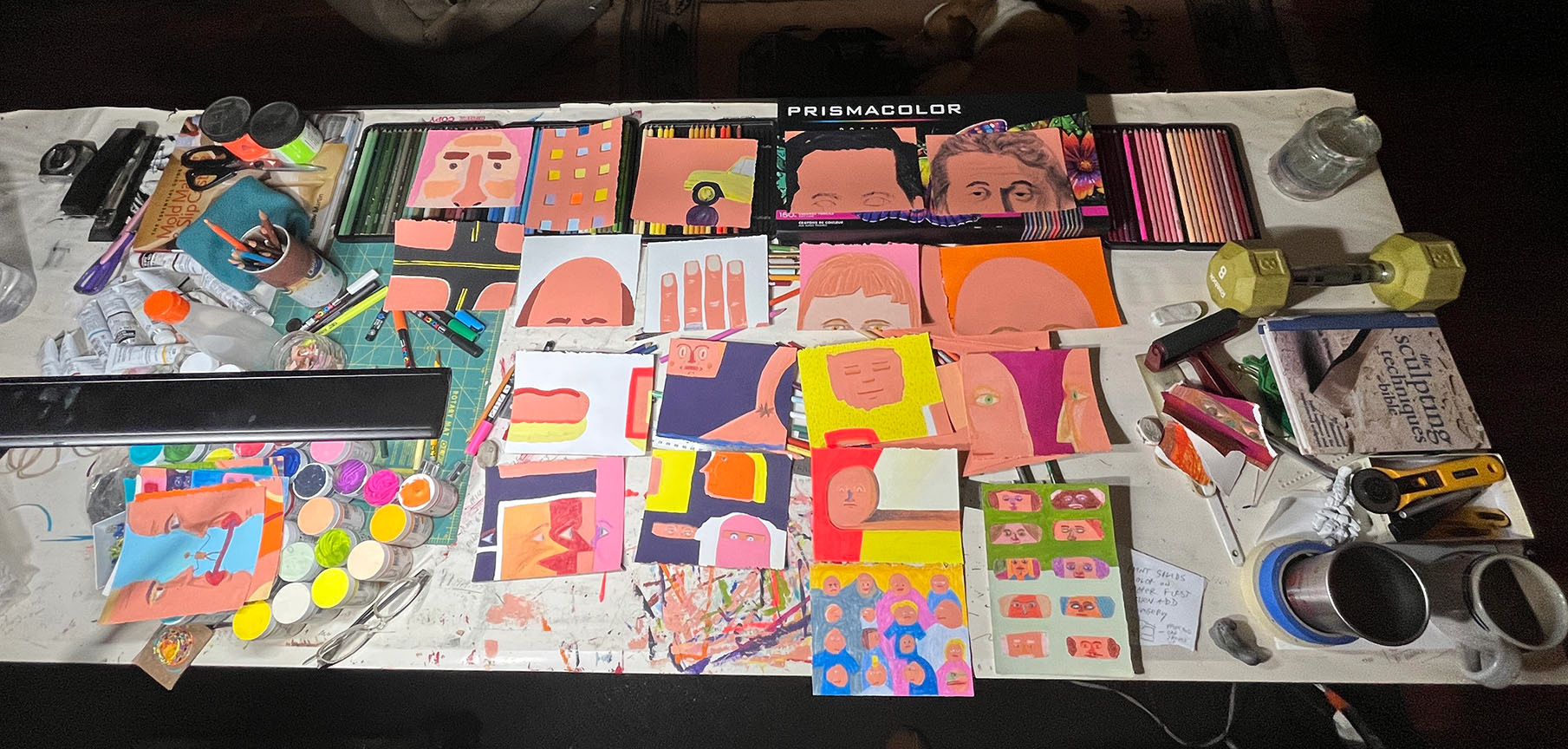 Paintings on heavy printmaking paper using bright colors and my skewed sense of humor.
